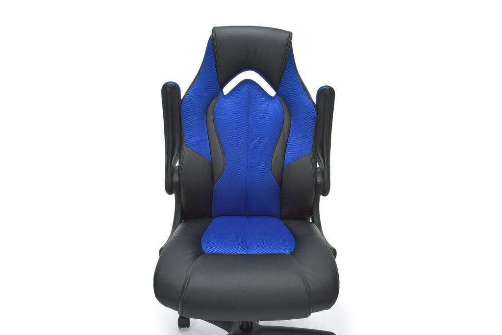 ADJUSTABLE RACING CHAIR: Features height adjustment, seat back recline control, flip up arms and 360 degrees of swivel