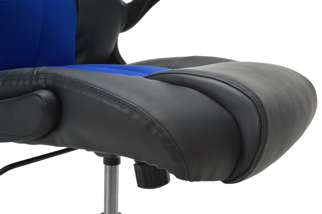 PREMIUM LEATHER CHAIR: Upholstered in SofThread Leather and contrasting colored mesh for an aggressive style and cool feel